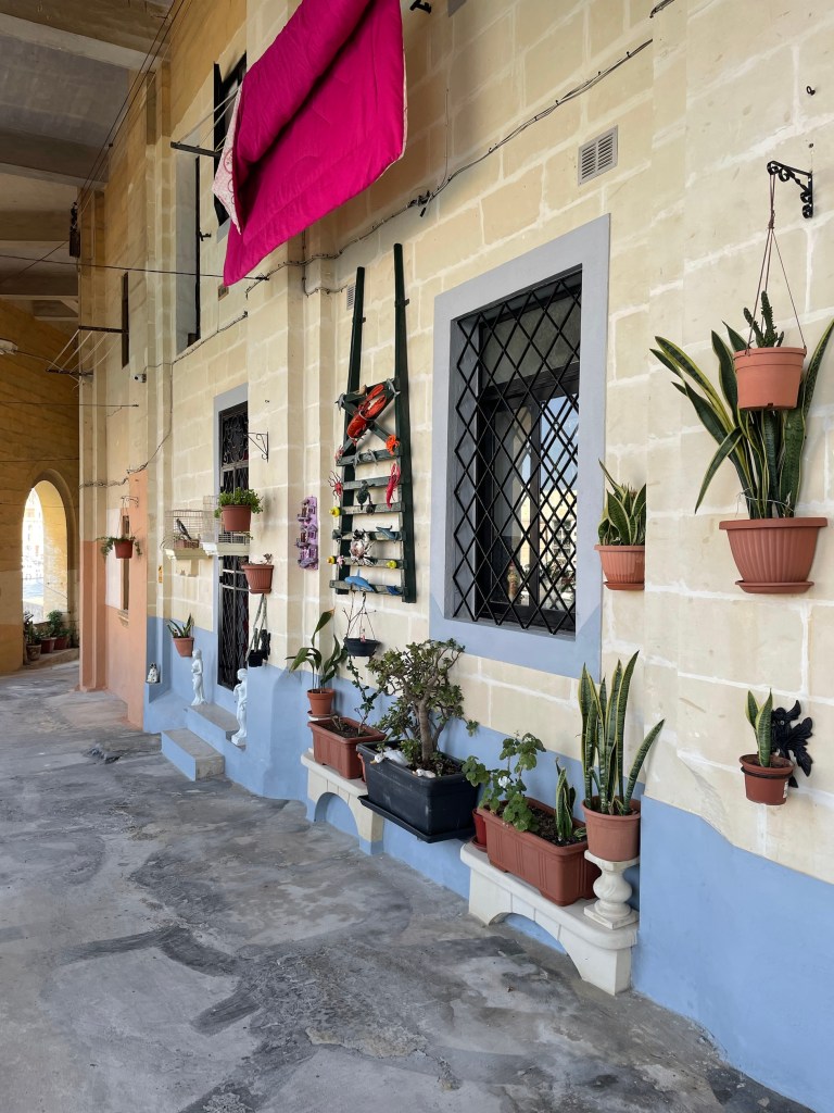 Finally I am in the zone, sleep-in until 6.30am on a Sunday morning! Decided I would sort out paperwork for next round of Maltese admin and do a bit of work in advance. Opened my bedroom window to let the cool air come in – view from the other side…..