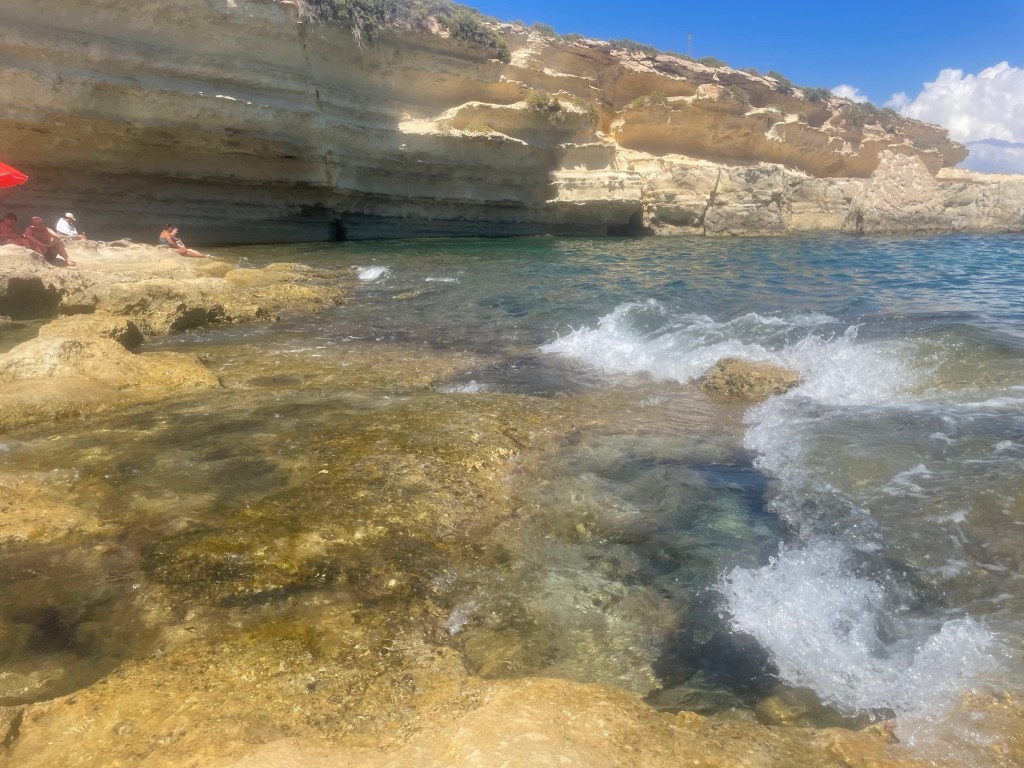 We decided around 2pm to get to the sea, and took off, me navigating and George driving….I got us lost on the way to marsaxlokk – and the infamous St Peter’s Pool swimming hole! We drove on to the lesser know Little Peter’s Pool without the crowds!! Not smaller and much less populated..