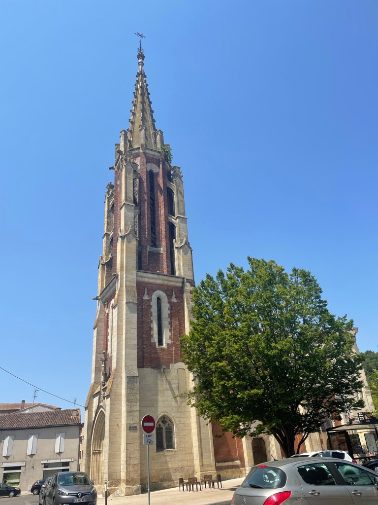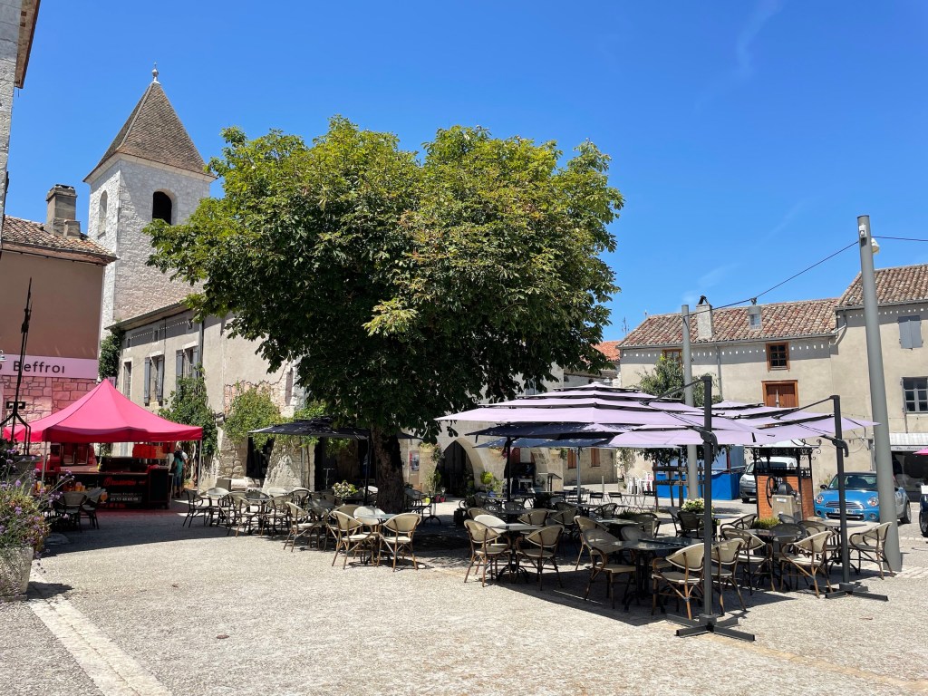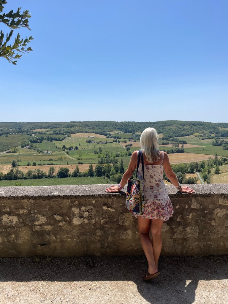 Lunch was followed by a 40 minute (air conditioned) car ride to Fumel – my base for the next 10 days….stopping halfway at village atop of a hill for views and a cold beer!