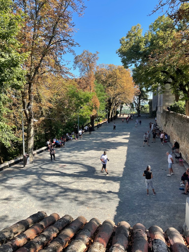 Last night we went for a walk around 7pm to try and find some air! Still 38degress in the shade – town empty but up by the castle, in the shade…..Petangue!