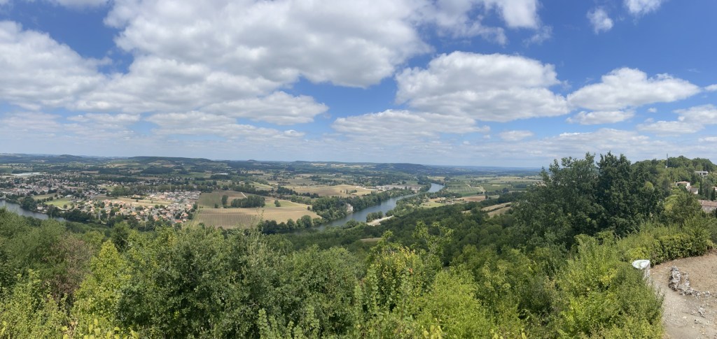 Here is a panoramic view from the lookout looking up the Lot et Garonne (valley) to Fumel in the distance.