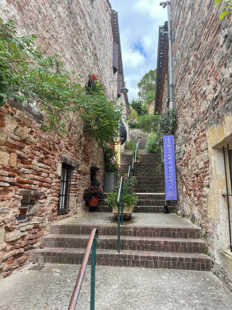 First stop, buy paint for shutters, and then a picnic lunch to take to the cathedral on the top of a hill in Penne-d’Agenais….