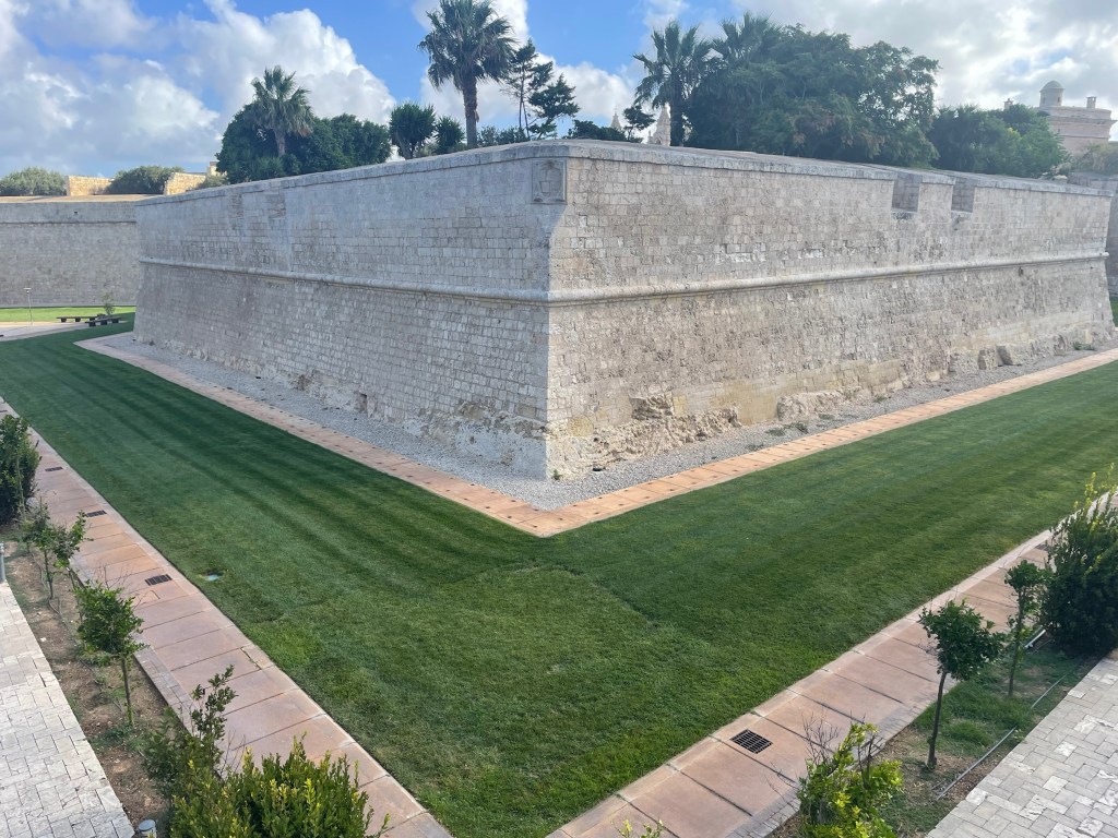 A little shopping in the Mdina glass shops and back out over the bridge and moat gardens….