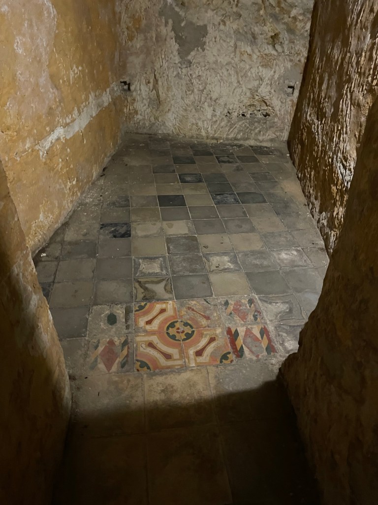 Halls of stone rooms that served as shelters in WWII – some of the Maltese tiles remain where the people tried to make it homely…
