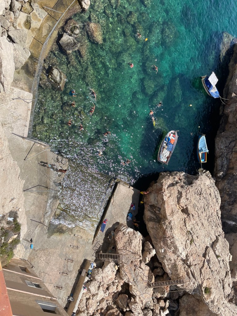 We did however enjoy a cool drink from the terrace restaurant on the cliff edge looking down at the Sunday swimmers.