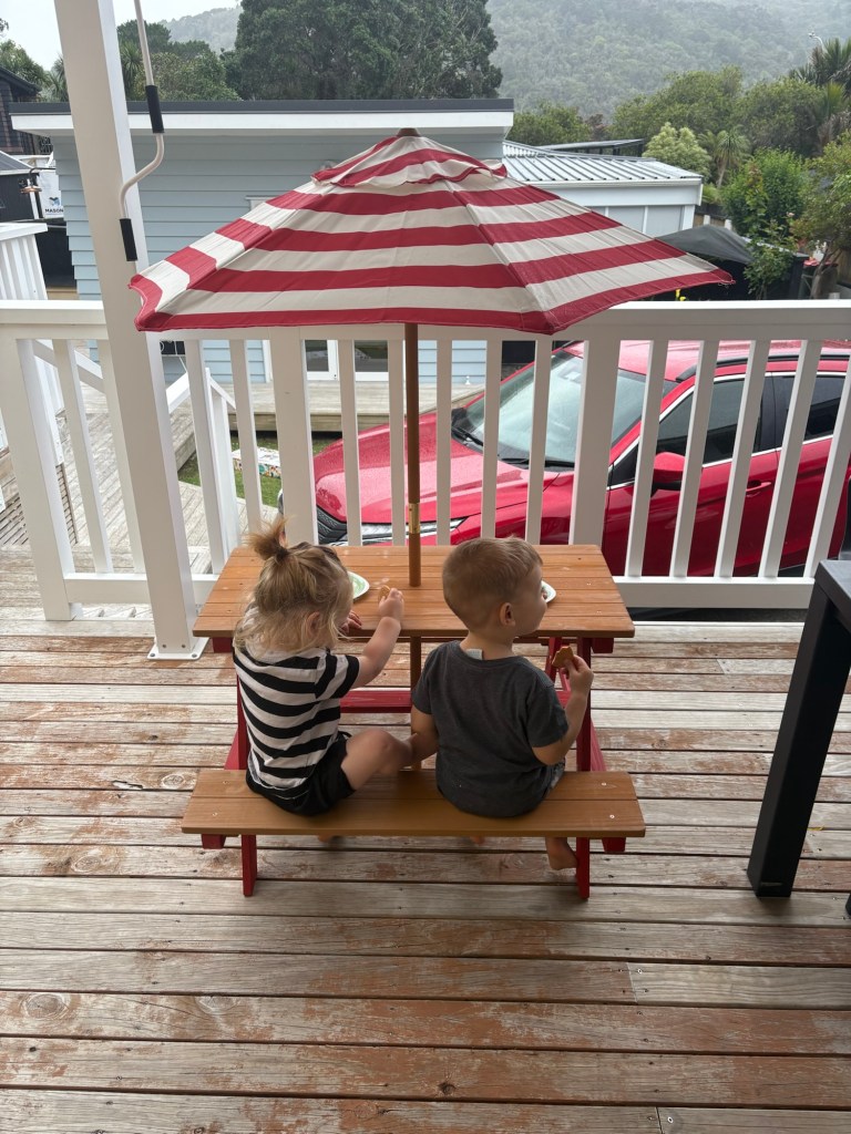 The not so babies, enjoyed their new outdoor furniture..and then between Christmas and new year the wild kiwi summer weather kicked in, with lots of rain and mini tornado rearranging the outdoor furniture…