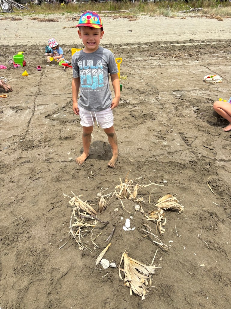 Tyler joined in the sandcastle contest producing his 4 year old version of a lion…Gran’ma, the apprentice, providing the buckets of sand for his creation!