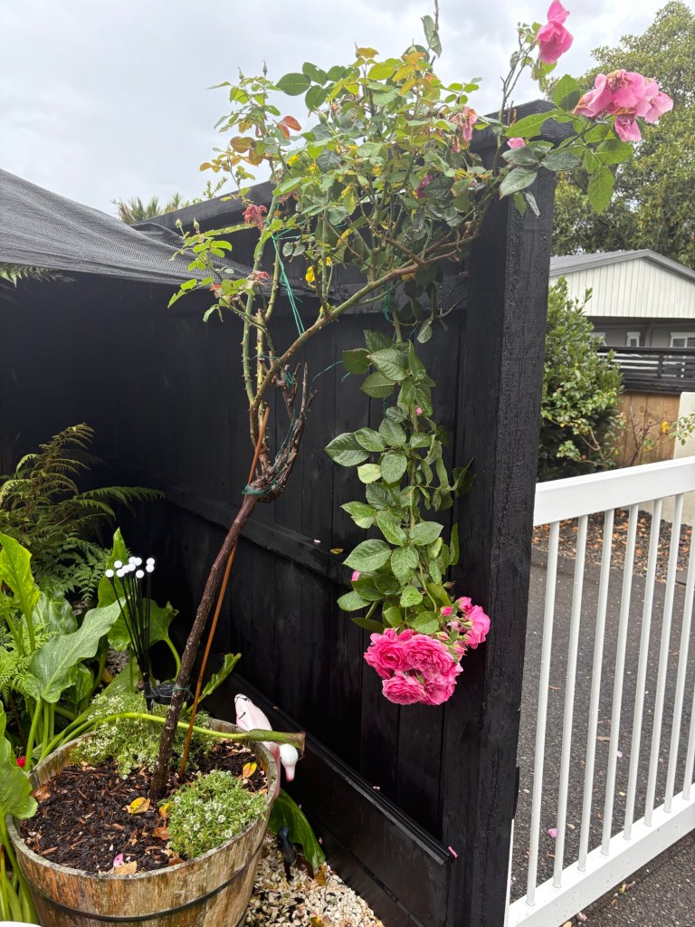 Mary rose, did her best….radiant as always through summer, but lost her battle with this week’s thunderstorms snapping her highest branch of blooms!