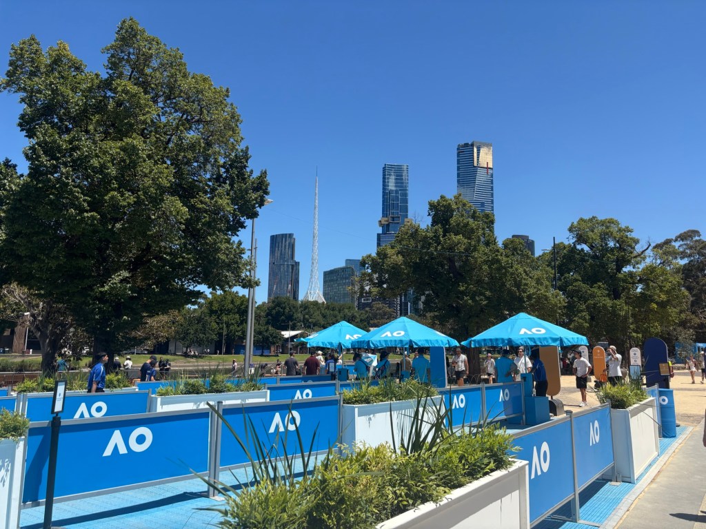 1. Well that was a surprise to see you in Melbourne enjoy hope you see some good tennis and weather stays fine though some of its covered there i think. Love Bar