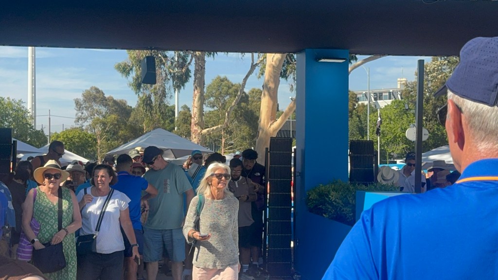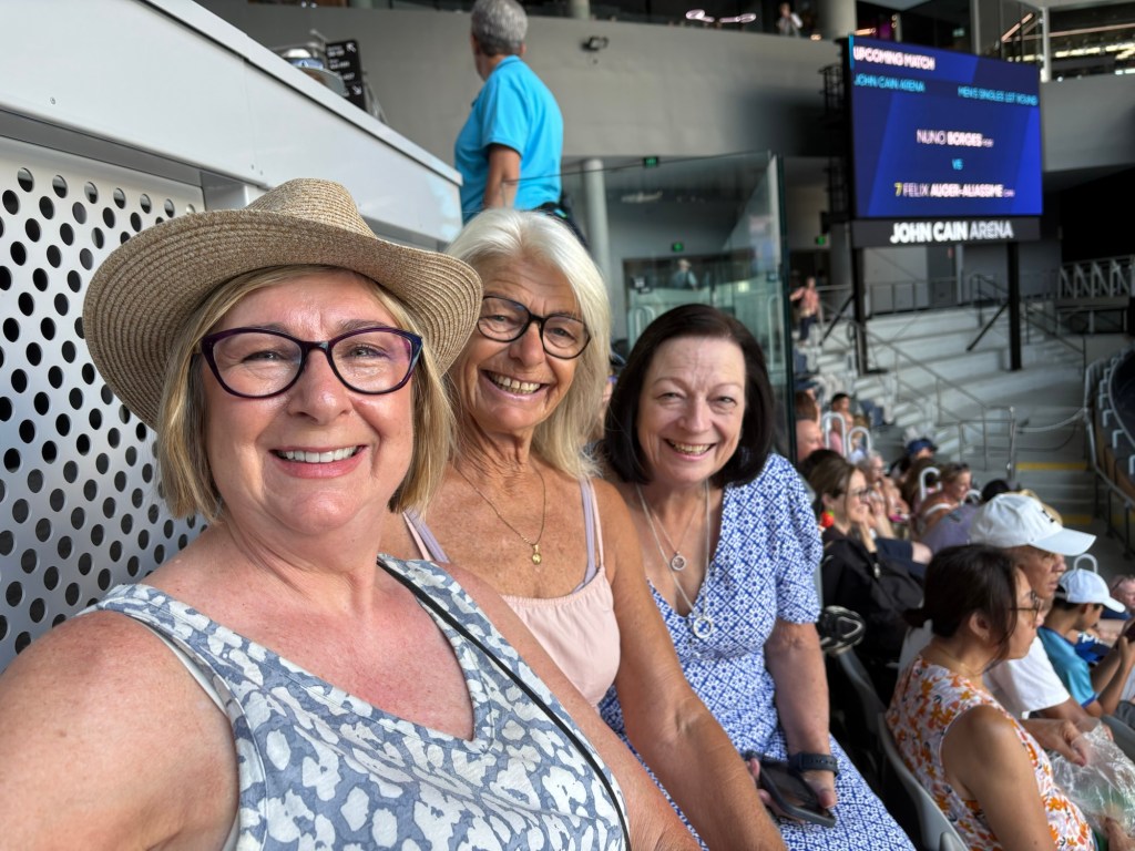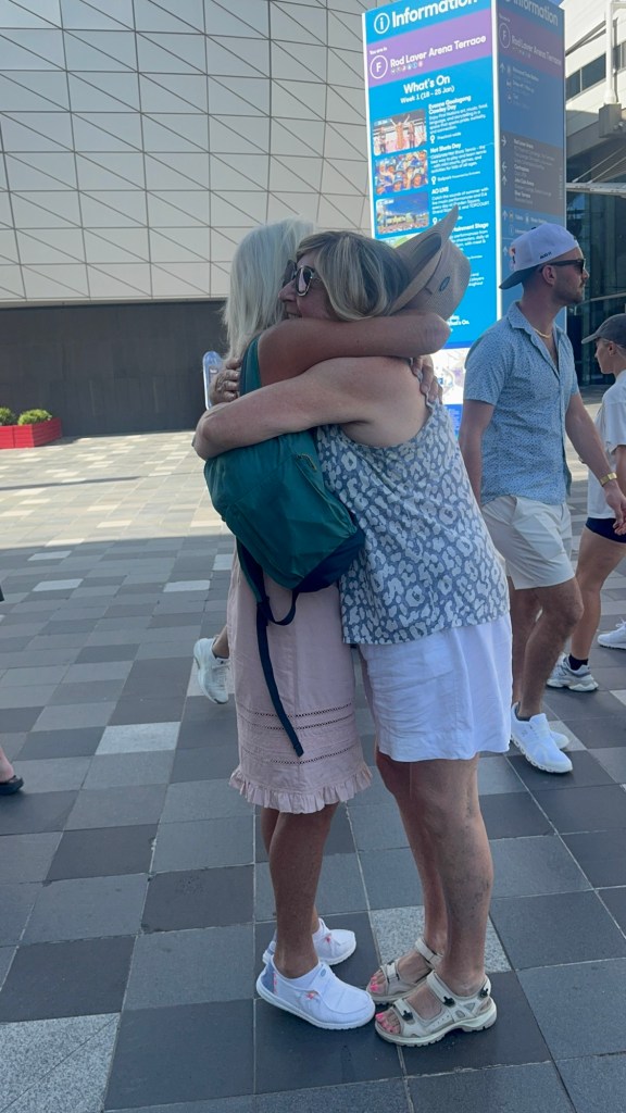 But first the gate…the day promised to be full of people with a 30 minute queue to get in …. Then it was off to surprise another Brisbane friend who was also visiting the tennis yesterday!