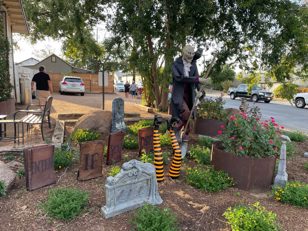 Halloween decorations, we checked in at an infamous (no bookings taken) restaurant around 5pm to get a table for Nine – folllowed by a great meal and trip into town, settling in a bar to watch the college football….and listen to live music!