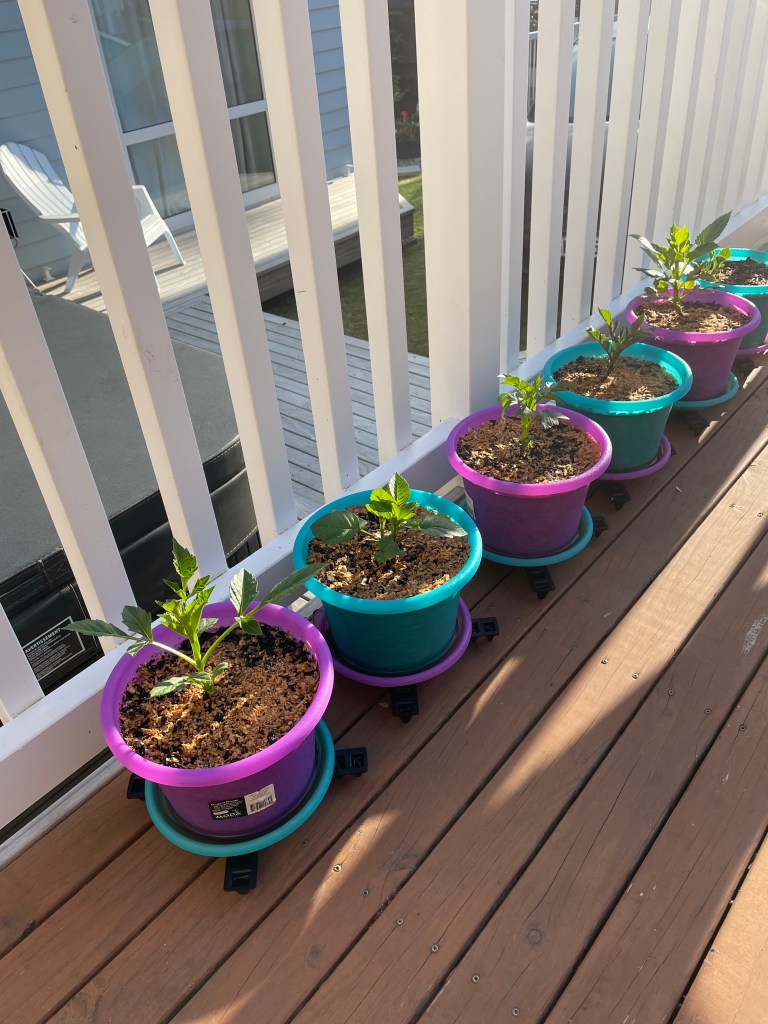 The Tournesols (sunflowers) have popped – grown from seeds and over 5 foot!