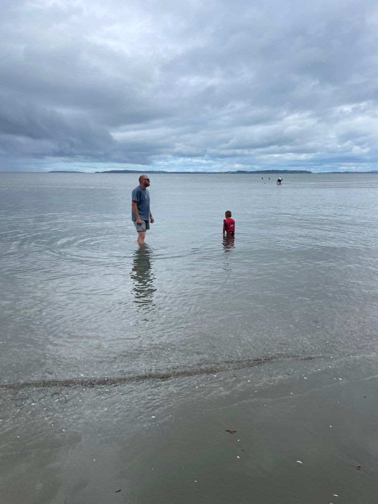 As Jaxon and Steph had a date night planned I brought Mr nearly three year old home to the cottage for a Gran’ma and Grandson night! We were straight to the beach…to cool off!