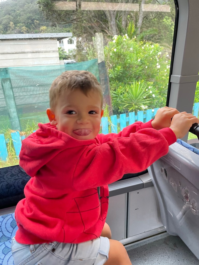 Another first – a bus ride, after explaining the lack of seatbelts, the hold on tight and don’t press the yellow button until we are ready to get off rules, we then migrated to the back seat….middle! What is it with boys and back seats of buses! On the way back, with our shopping and treats, there was no hesitation – straight to the back seat!