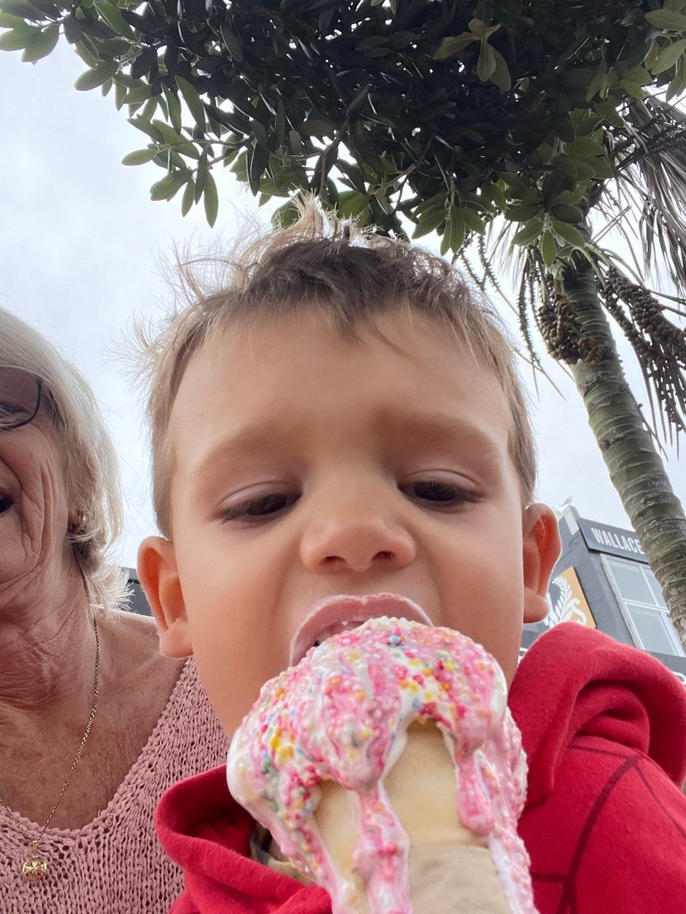While full focus was on devouring, melting seemed to win the race, and over half the ice cream certainly made it inside mr little human, the other half was spread over face, footpath, clothes and Gran’ma! Nothing a few serviettes and quick trip to the bathroom didn’t fix!