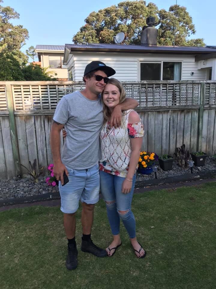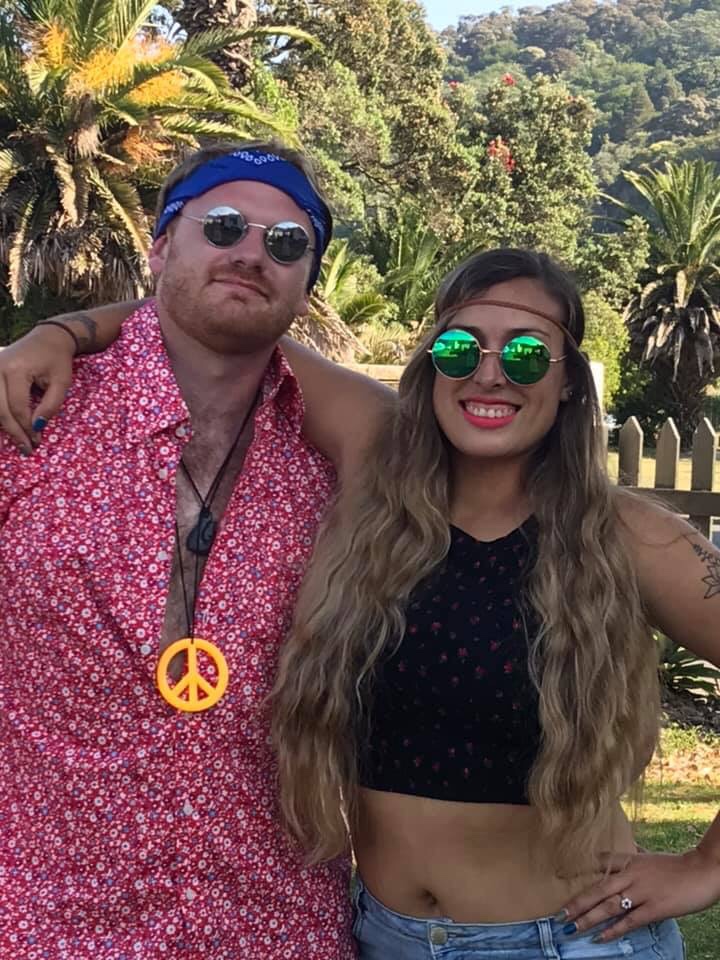 THE KISS….Mr and Mrs Bonnici, Waiwera Beach, with Sugarloaf Island in the background!