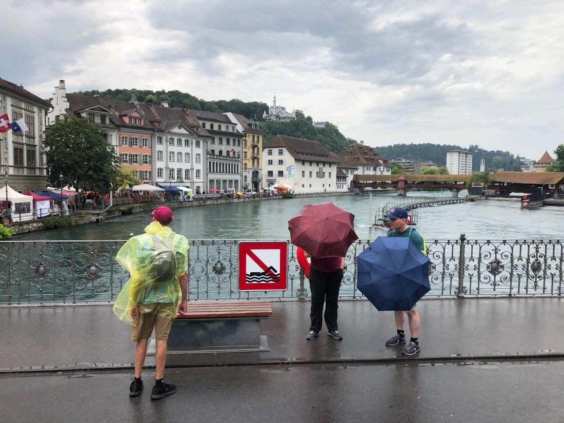 Resting en route to old town before the hill climb, and checking out the cricket score! Half way up the hill, it was victory for the black caps in the World Cup semi final.