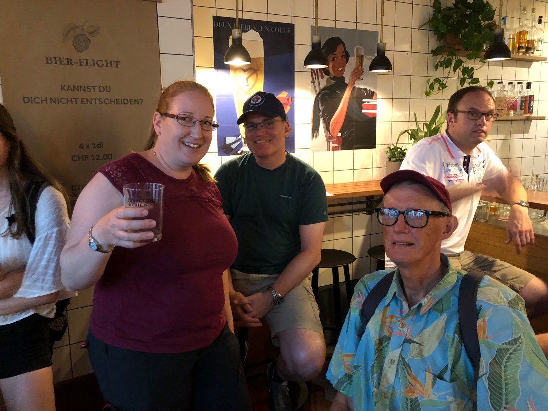 Zwierzyniec Beer, halibut, pork and peas, risotto! The ratings on the food were correct, delicious food. And just so we will write a good review on TripAdvisor, our waiter Simon bought out complementary flavoured vodka shots! Whilst we were eating our dinner a couple of accordion playing street vendors came past and George shared our bread with them.