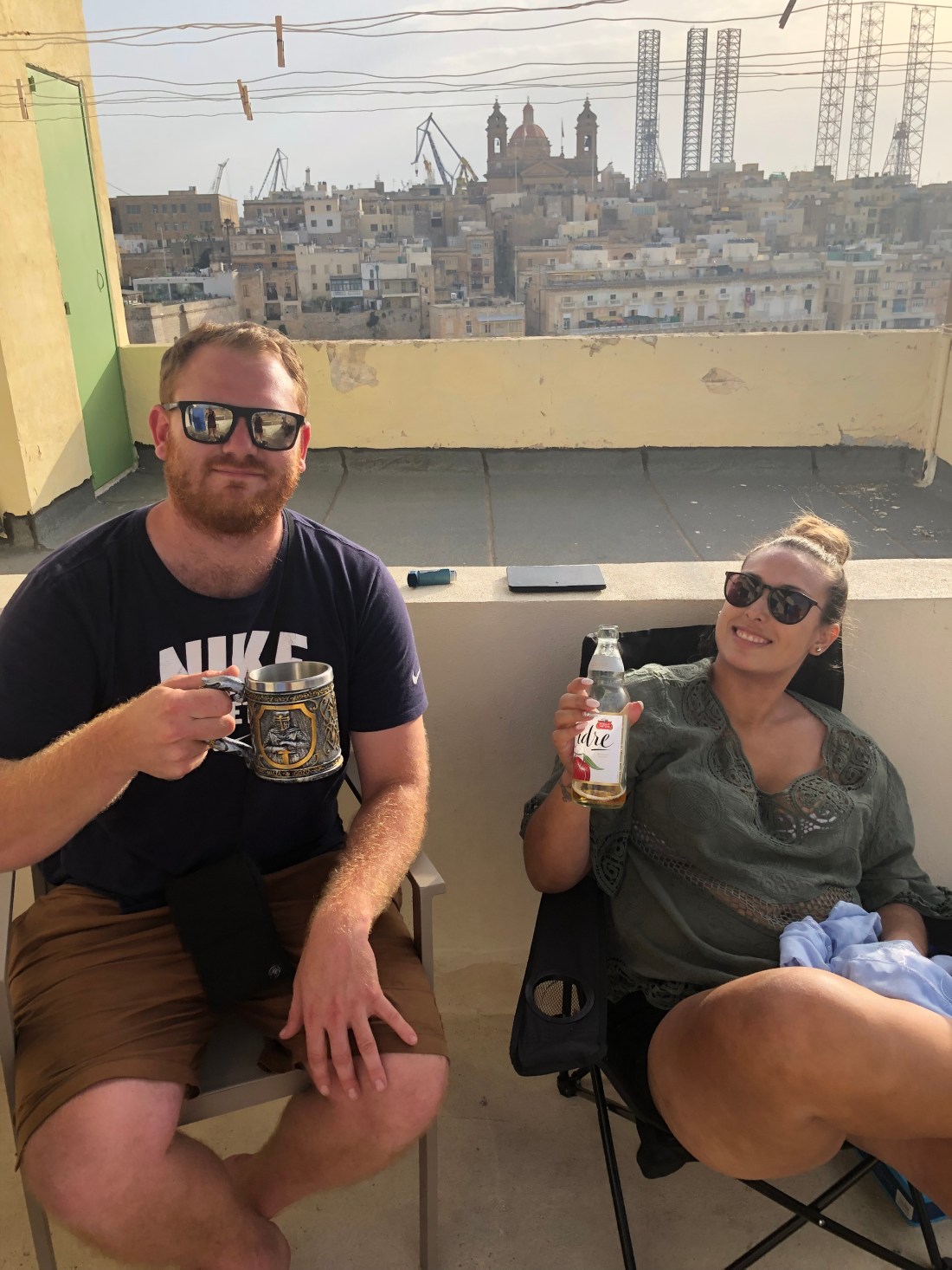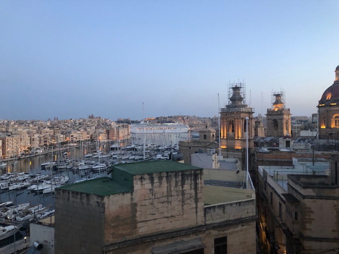 I sat on the roof top deck from 6.30am this morning, talking to Mum back in NZ and watched three cruise ships roll in. The orange haze of the sunrise over Valletta promising another warm day.