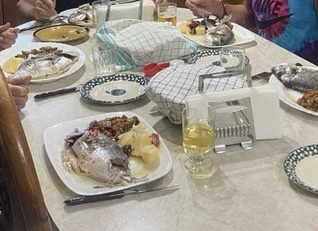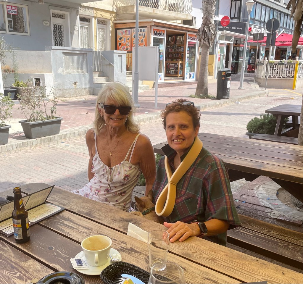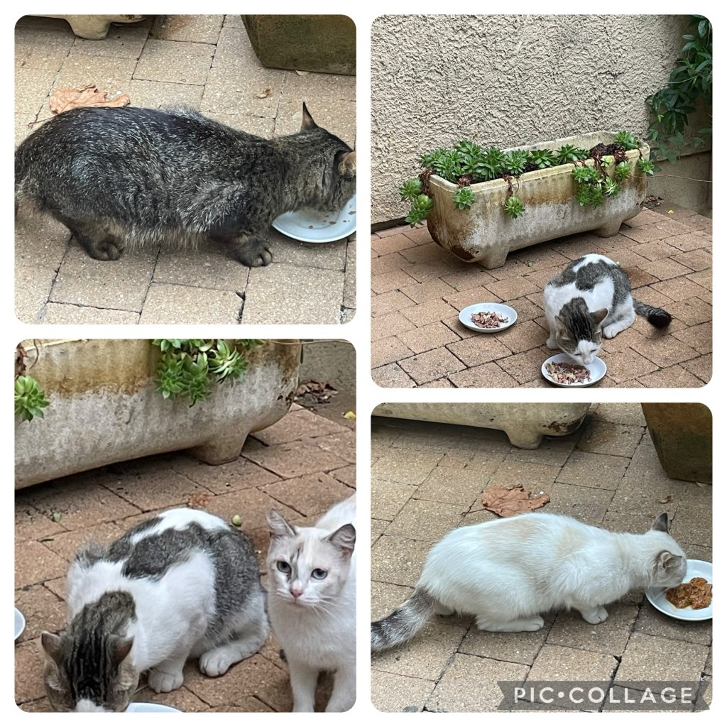 In the evening we had a drink at the hotel with the owner (she only had coffee) and enjoyed the friendly street cats getting spoiled with hotel (cat) food!!