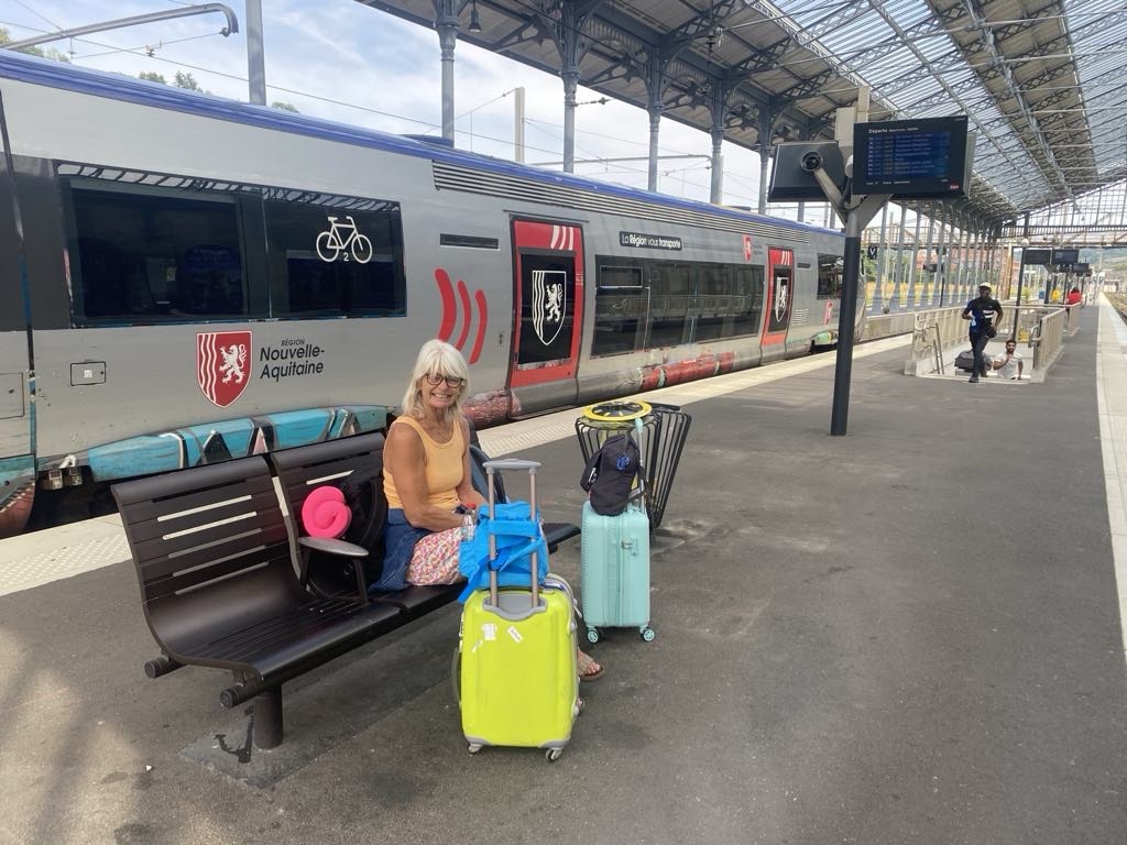 Kevin dropped us to the local train at 1pm, Trudi accompanied Sue and Bags on the first 45 minute ride, hung out at station until Sue and Bags safely ensconced in Paris bound TGV (3-4 hour journey which was an hour late leaving) , then caught the little train back … for a good nights sleep and sleep in while Sue stays the night, dumps the bags and retraces todays journey in reverse from Paris to Fumel’